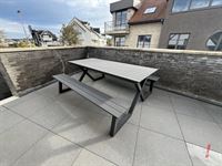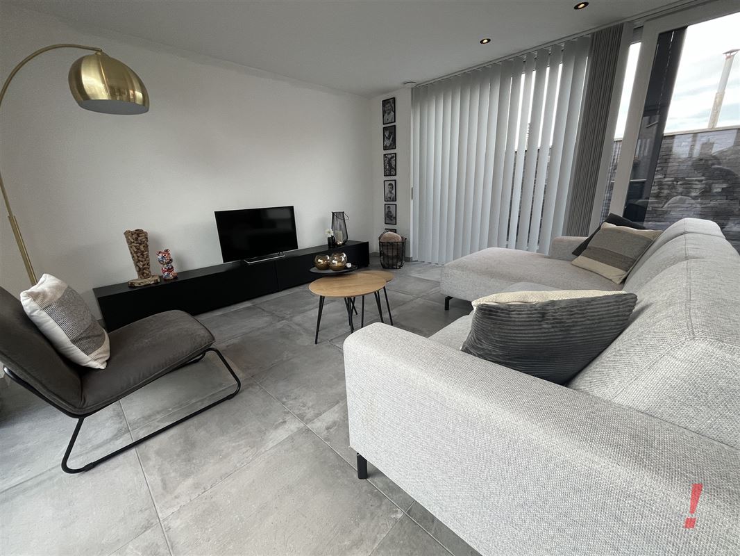 Dit appartement heeft een inkomhal, gastentoilet, lichtrijke woonkamer met open volledig ingerichte keuken met bijhorende berging. Via de woonkamer kan je de twee terrassen bereiken.