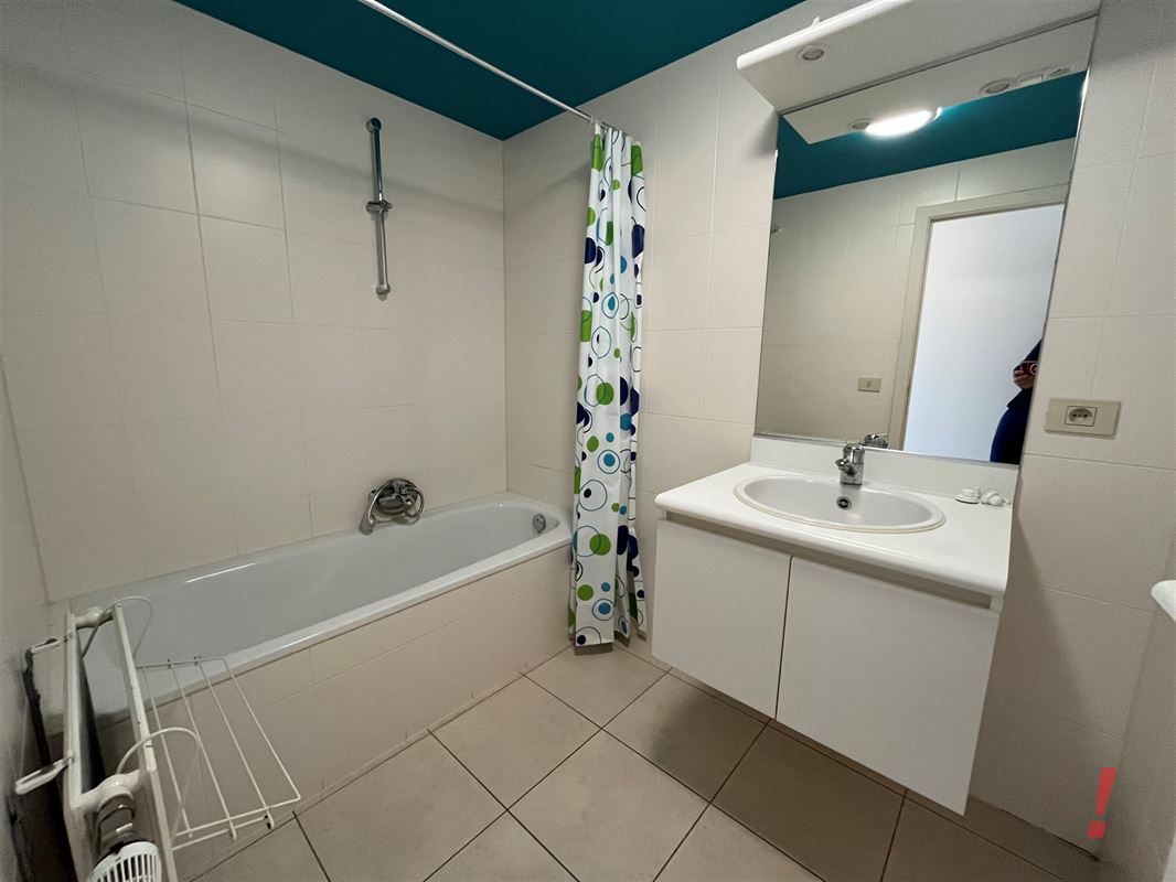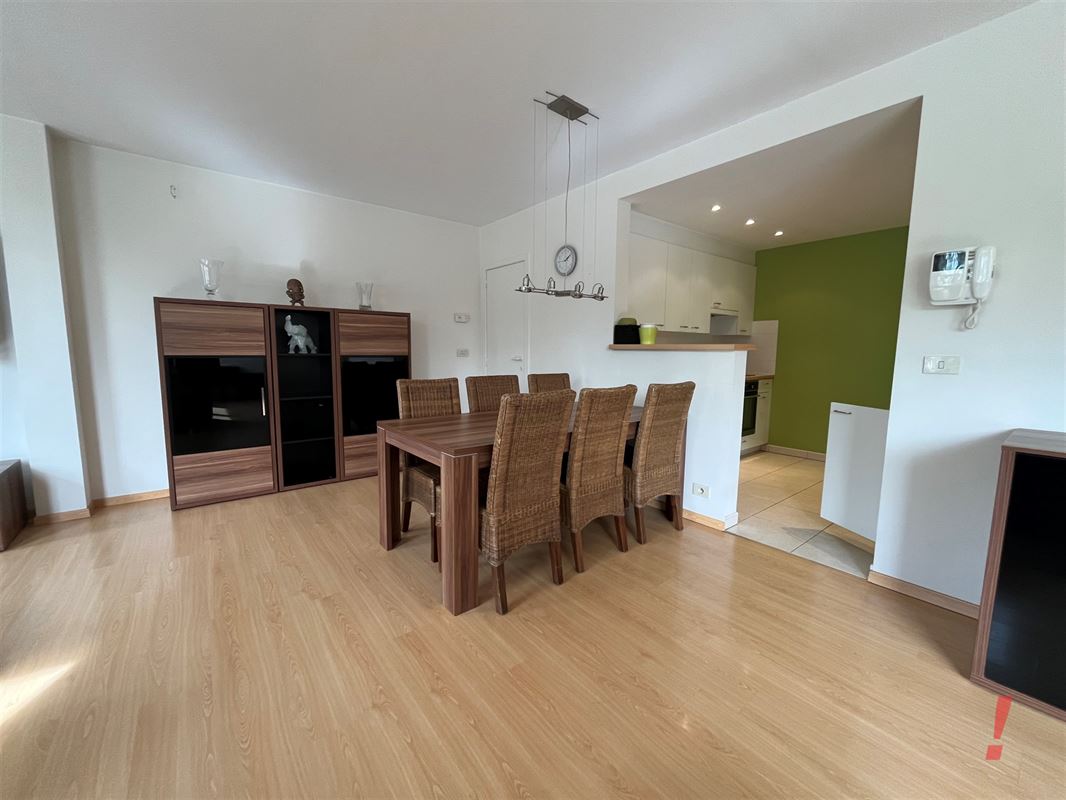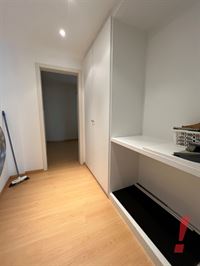 Dit appartement omvat een inkomhal met vestiaire en toilet. Zeer lichtrijke woon- en eetkamer met grote ramen. Open keuken voorzien van alle toestellen zijnde kookfornuis, dampkap, oven, frigo en diepvries.