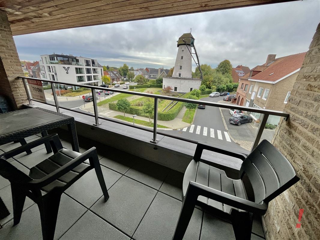 Super verzorgd appartement op het tweede verdiep met een mooi verzicht op de molen. Het appartement omvat een inkomhal met gastentoilet, ruime woonkamer (60 m2) met eet-en zithoek, via een schuifraam bereik je het overdekte terras. Open volledig ingerichte keuken met inbouwfrigo, heteluchtoven, microgolfoven,