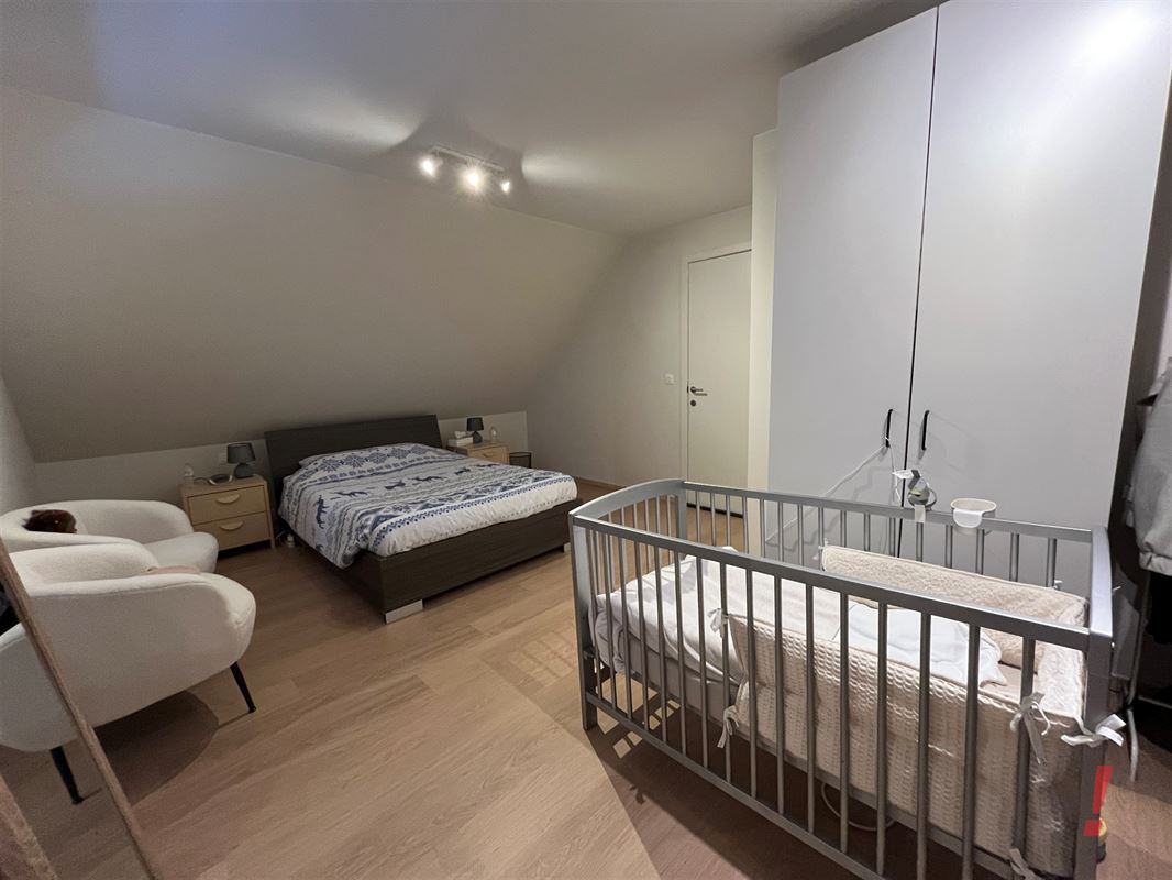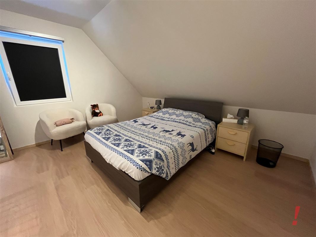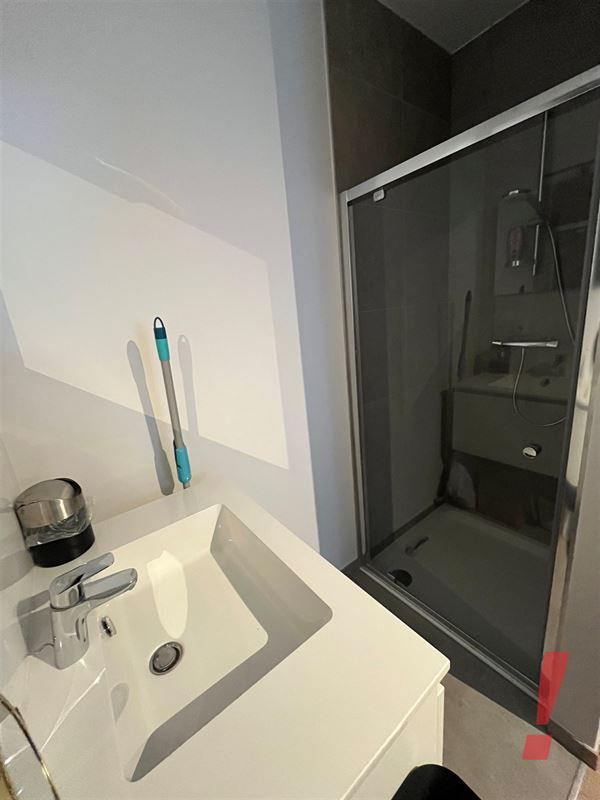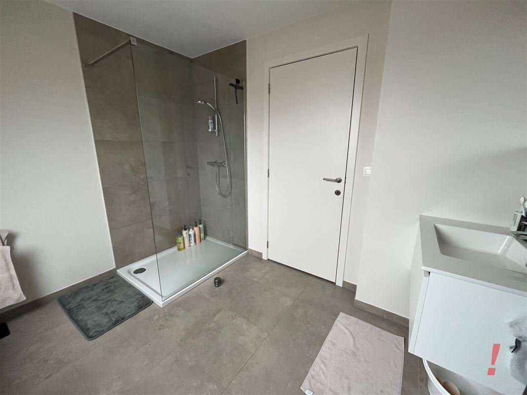 Op de gelijkvloerse verdieping is een 1e slaapkamer met douche en lavabo.