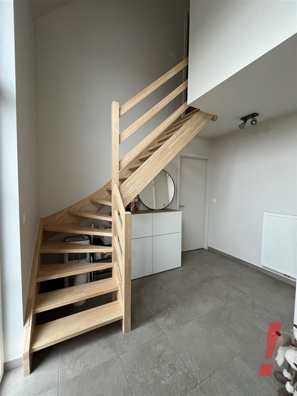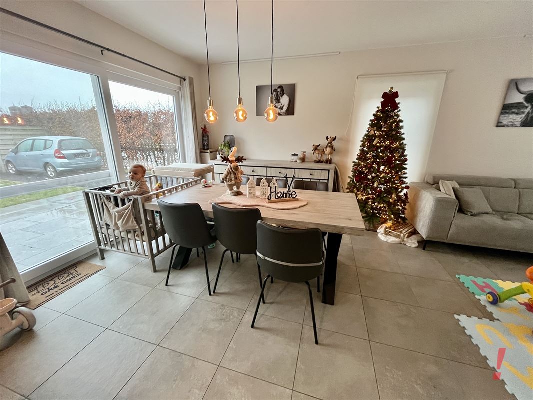 Deze woning omvat een royale inkomhal met open traphal en gastentoilet. Lichtrijke woon- en eetkamer met een open ingerichte keuken. Vanuit de keuken is zicht naar de tuin. Verder is er een handige bergruimte alsook garage.
