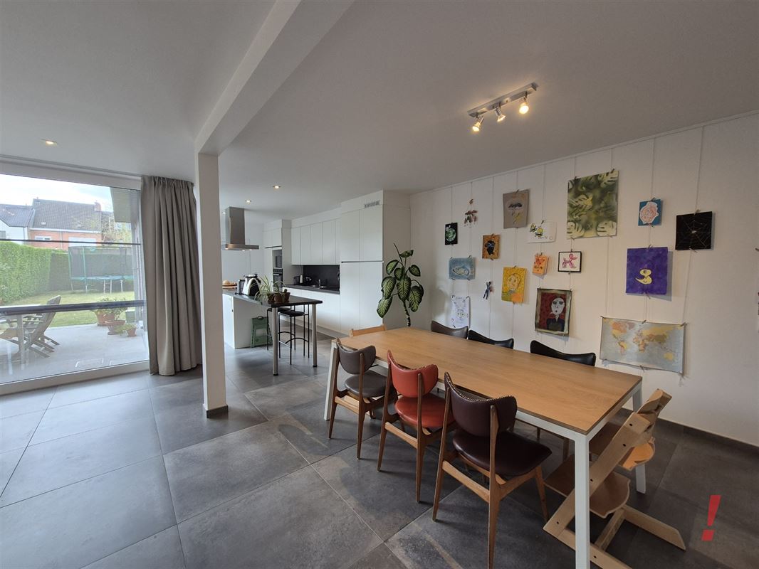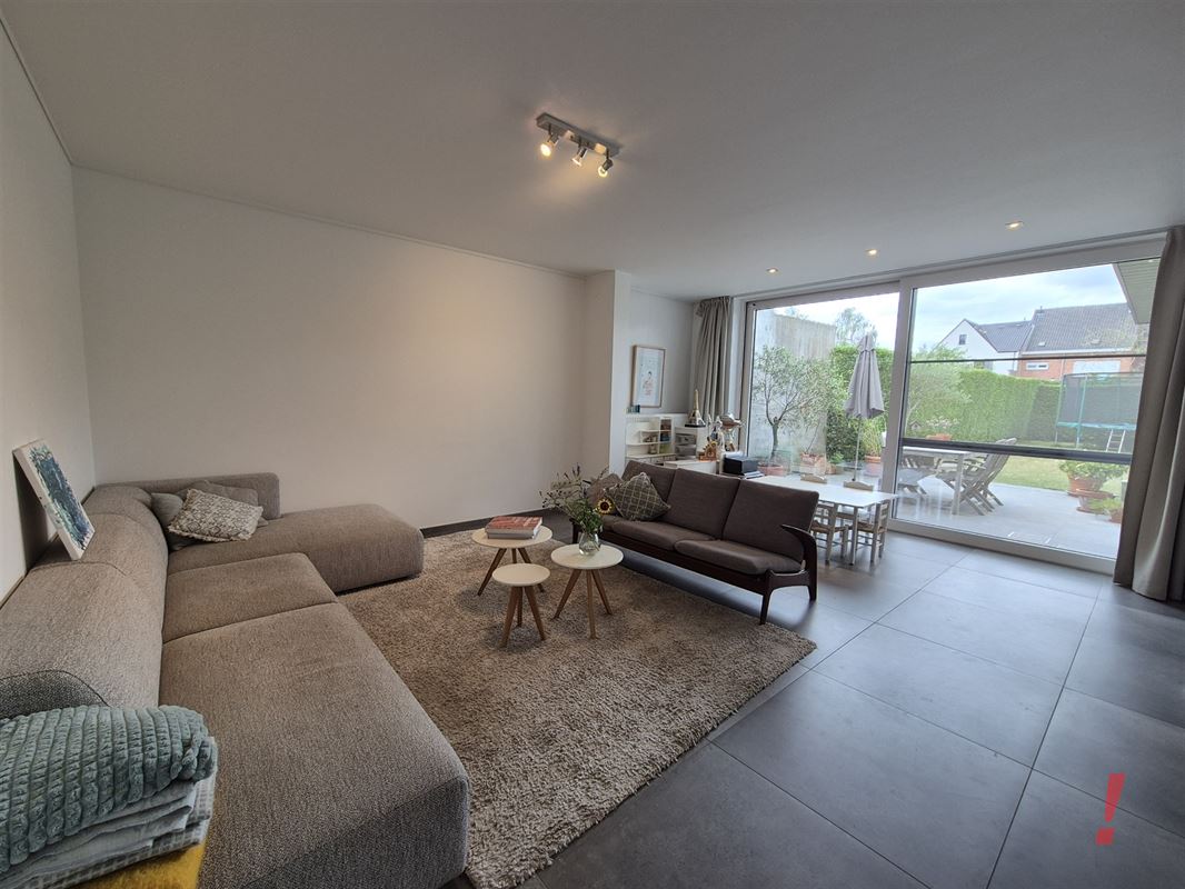Vanuit de living is het terras bereikbaar via het schuifraam , aangelegde zonnige tuin op 320m2 met tuinhuis.