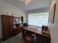 Inkomhal met gastentoilet en afzonderlijke bureel, ruime garage met elektrische poort.