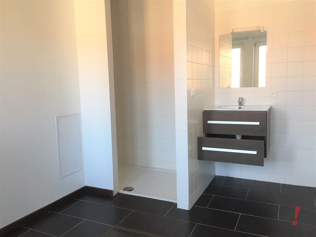 Kamer voorzien van inloopdouche en lavabomeubel. Aparte keuken met kookfornuis, dampkap en frigo.