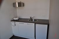 Kamer voorzien van inloopdouche en lavabomeubel. Aparte keuken met kookfornuis, dampkap en frigo.