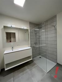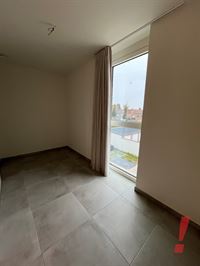 Het appartement omvat een inkomhal met apart toilet. Glazen deur naar de lichtrijke woon/eetkamer met open ingerichte keuken voorzien van alle toestellen. Er is een kookfornuis, dampkap, frigo, oven en vaatwasmachine. Via het grote schuifraam is het volwaardig terras bereikbaar.