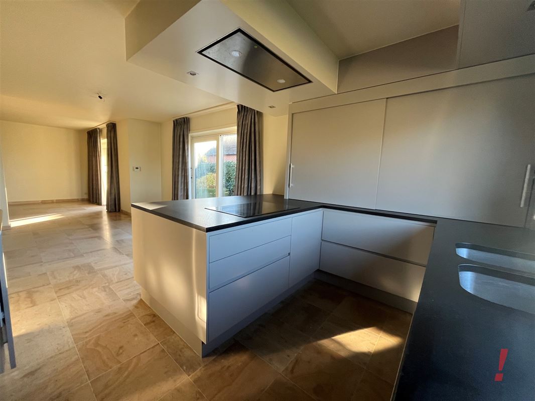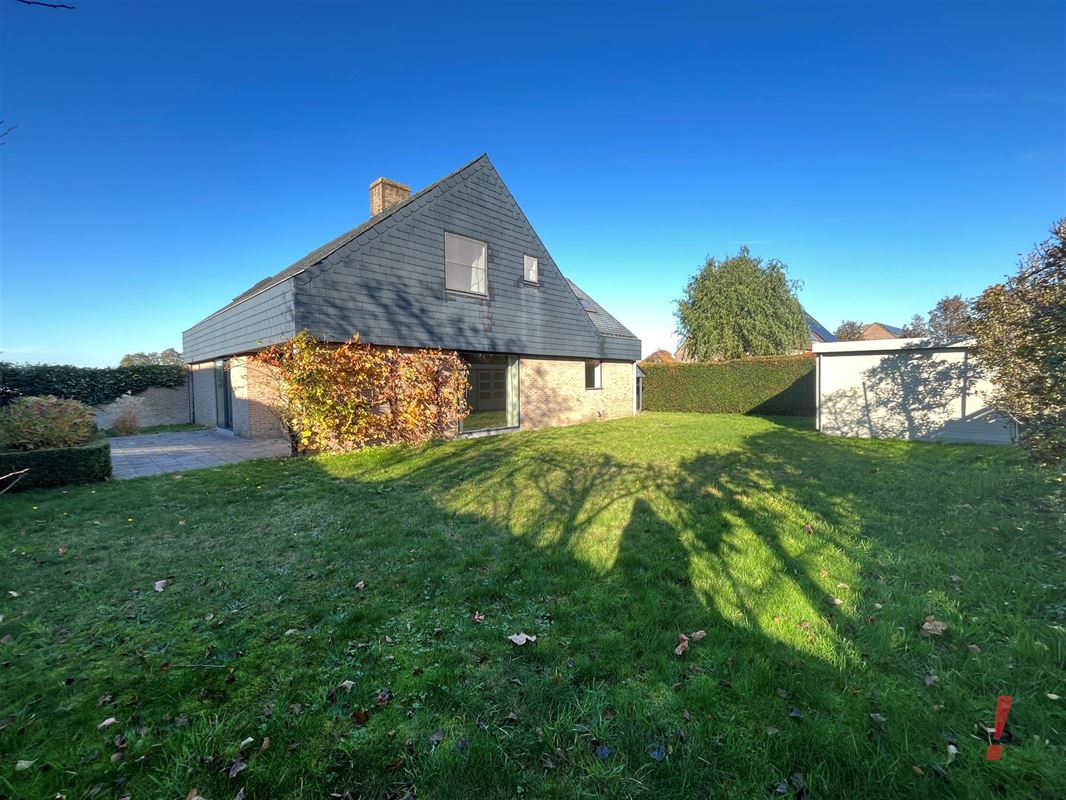 Deze alleenstaande woning omvat een inkomhal met gastentoilet en bureelruimte. Doorgang naar de lichtrijke woonkamer met heel wat ingemaakte kasten en een houtcassette. Aansluitend is de eetkamer met open ingerichte keuken voorzien van handige keukenberging. Vanuit de ganse leefruimte is zicht op de tuin.