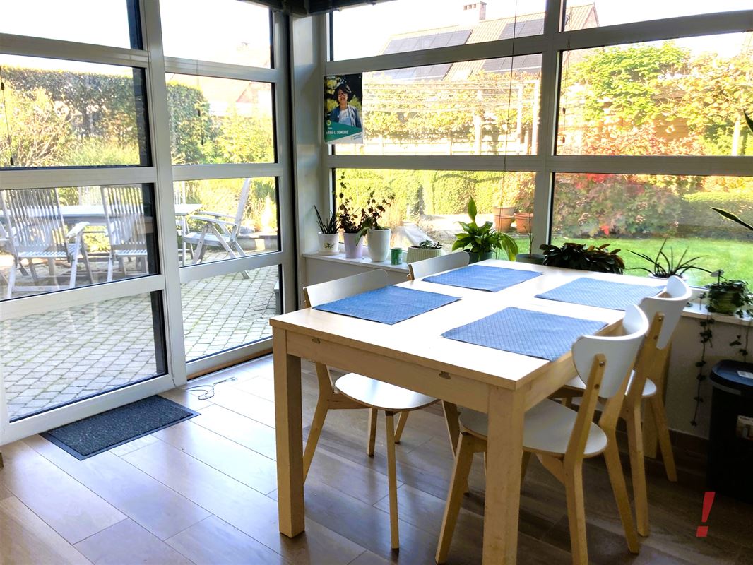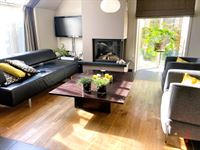 Omvat een inkomhal met toilet en CV-berging. Doorgang naar de zeer lichtrijke woon- en eetkamer, in de zithoek is een gashaard voorzien.