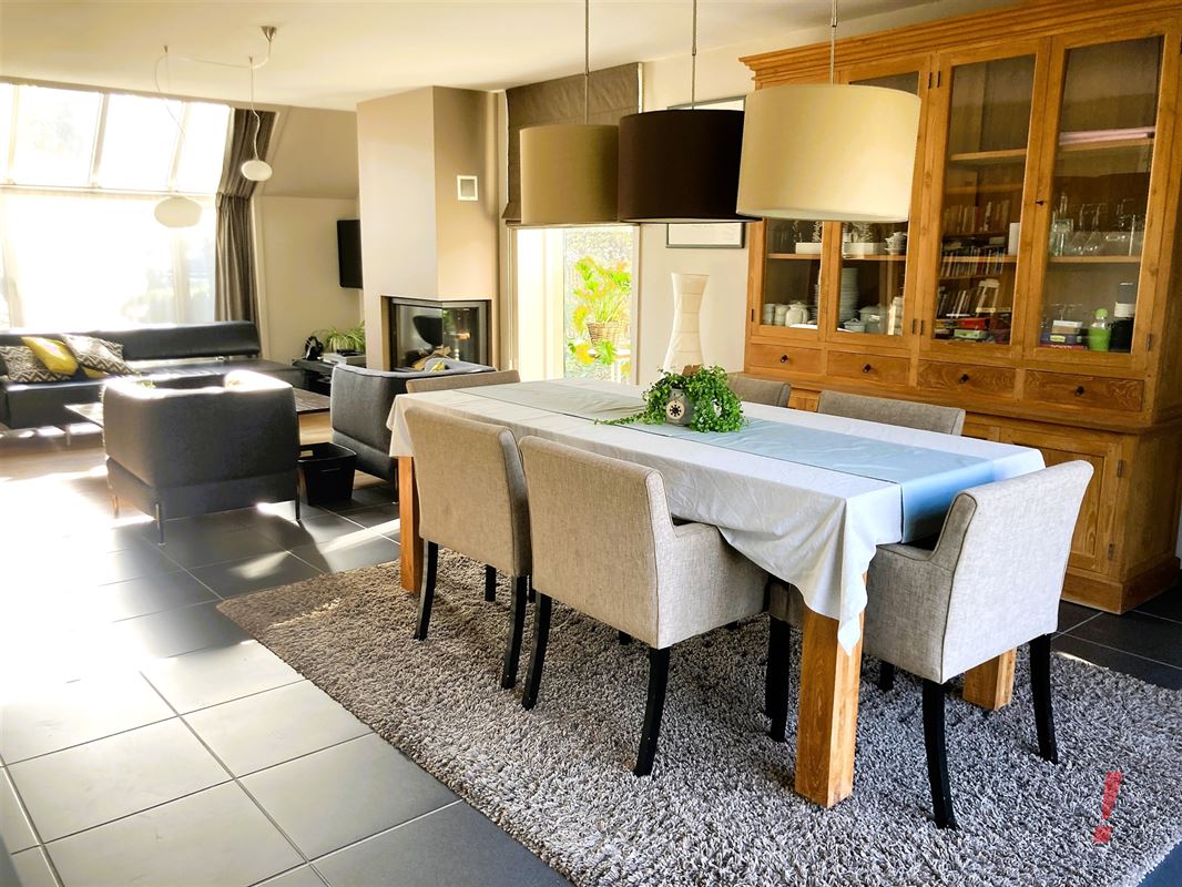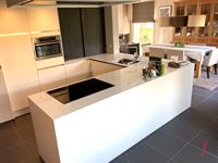 Langs de achterzijde is een open keuken met alle toestellen zijnde kookfornuis, dampkap, oven, frigo en vaatwasmachine. Bij de keuken is eetruimte voorzien.