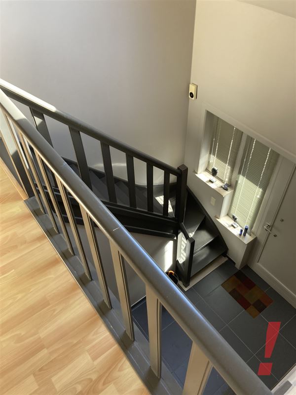Traphal naar de verdieping met 3 volwaardige slaapkamers en een badkamer met lavabomeubel, ligbad, douche en toilet.