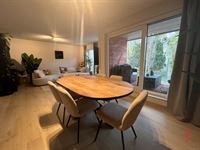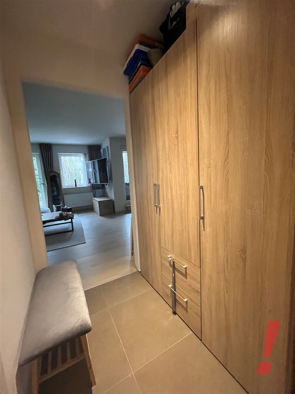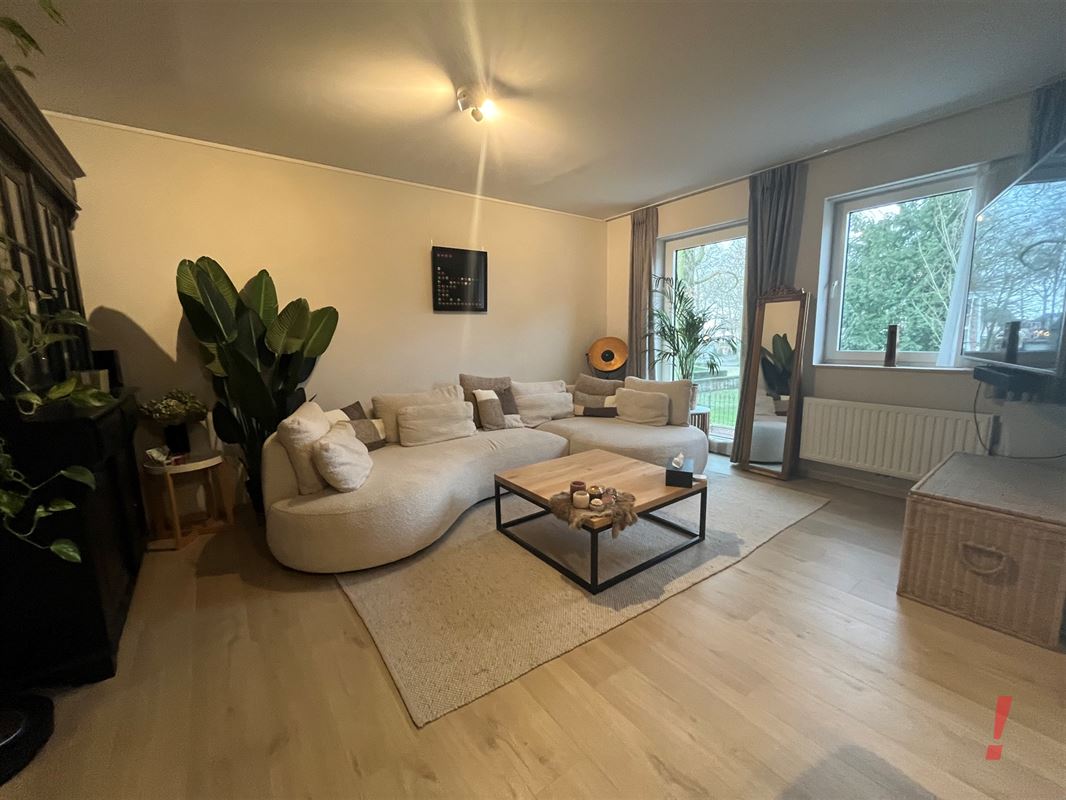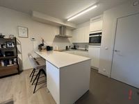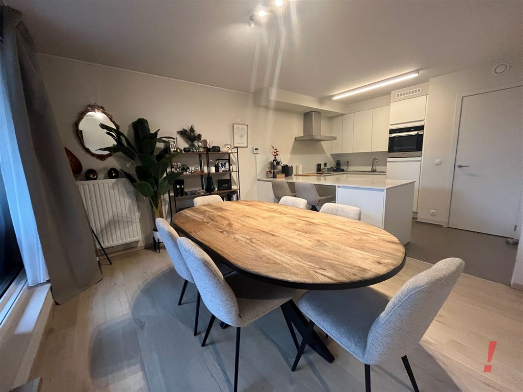 Ruime woonkamer met open ingerichte keuken. De keuken is voorzien van kookfornuis met dampkap, oven, frigo en vaatwasmachine. Aansluitend is er een ruime bergruimte met aansluiting voor wasmachine.