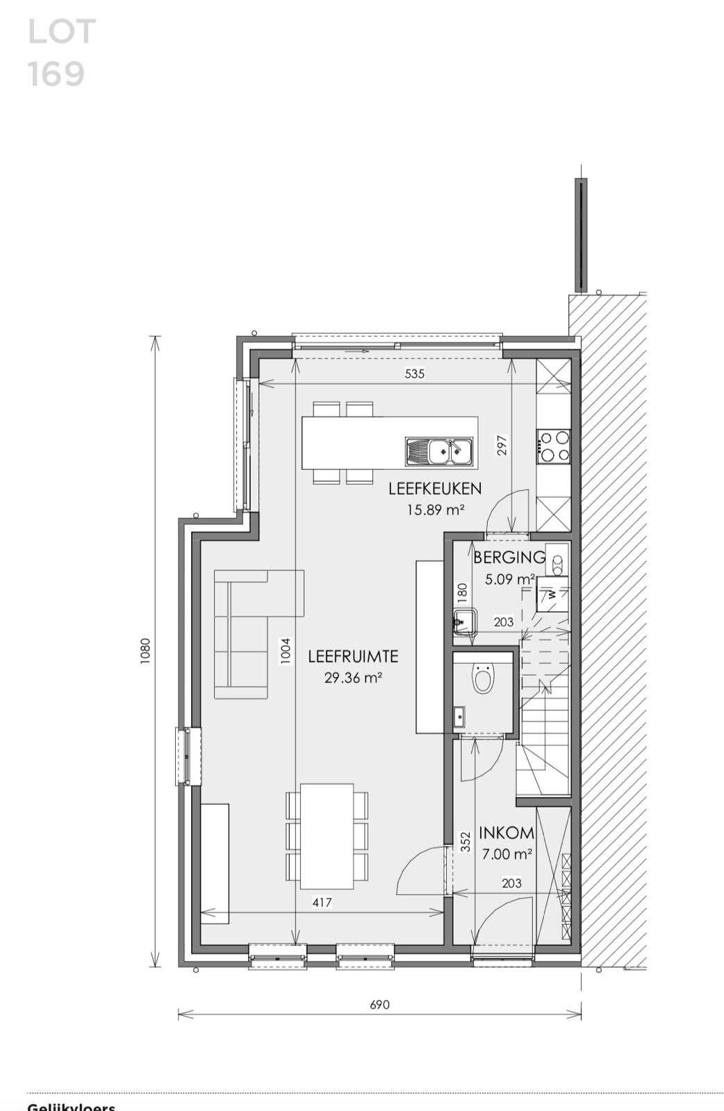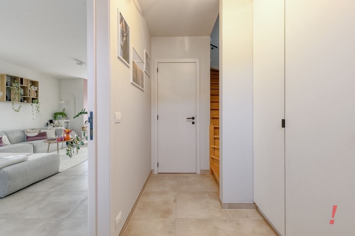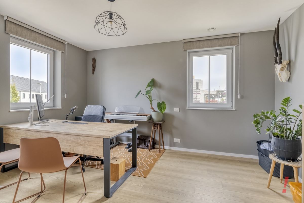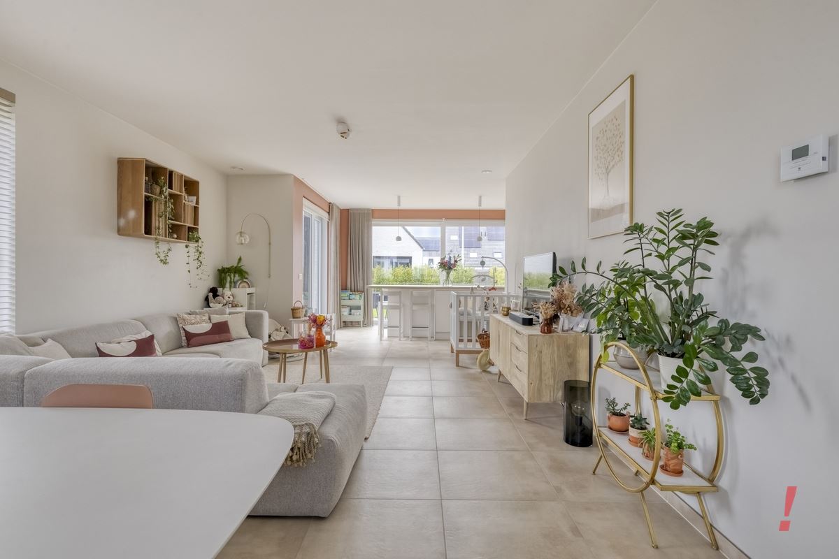 Er is een lichtrijke woonkamer met grote open keuken. De keuken is volledig ingericht, voorzien van alle toestellen en is als het ware het levende hart van de woning dankzij de grote raampartijen met zicht op de tuin.