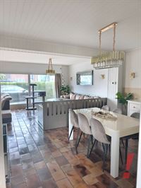 Deze woning omvat allereerst een inkomhal met net gastentoilet. Enorm grote woon- en eetkamer met veel raampartijen waardoor veel lichtinval binnenkomt, deze is voorzien van 2 salons. Aansluitend is een grote ingerichte leefkeuken, volledig instapklaar, met zicht en toegang op het terras en de tuin.
