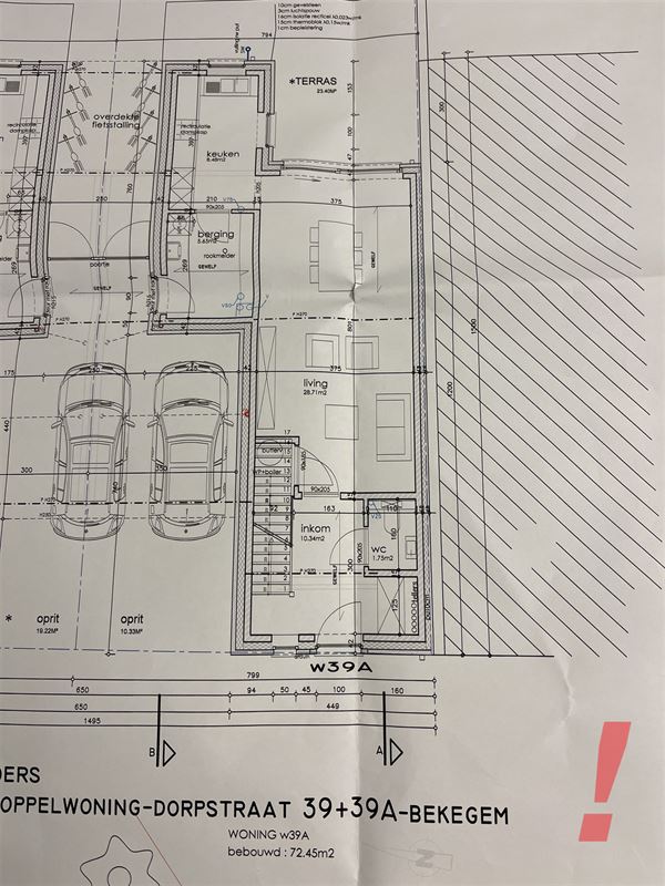 bouwgrond te koop voor het bouwen van een koppelwoning (rechts) op een totale oppervlakte van 504 m2 met een mooi